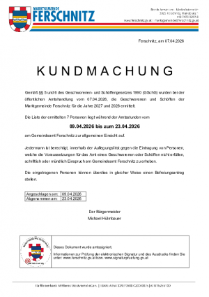 Informationen über die Finanzlage der Marktgemeinde Ferschnitz können auch unter Offener Haushalt / Finanzdaten aus dem öffentlichen Sektor abgerufen werden.