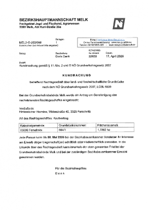 über die Auflegung des Jagdpachtverteilungsplanes und Auszahlung der Jagdpachtanteile